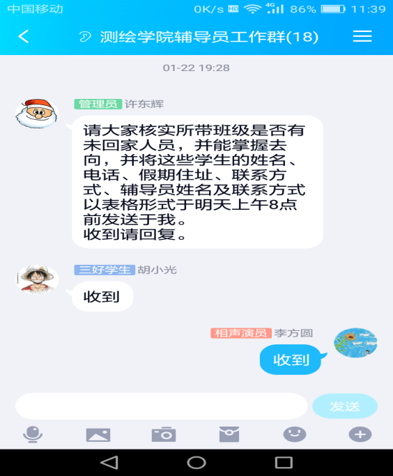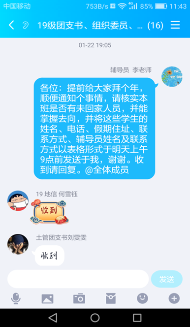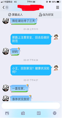 打赢抗“疫”防护战,与员工接触最密切的辅导员们一直都在,他们按照上级要求第一时间在班级群、家长群发布疫情的最新官方信息以及防控知识,嘱咐员工们正确认识新型病毒,减少恐慌情绪。同时排查统计班级内未回家同学、武汉籍、湖北籍同学以及接触湖北武汉籍人员同学相关信息,及时联系慰问,对在疫情期间去过湖北或身体不适的同学给予重点关注,叮嘱他们一定照顾好身体,保持乐观心态,有困难及时与辅导员进行沟通。通过员工每日线上打卡“报平安”、电话、短信、QQ群、微信等方式时刻关注员工身体和思想动态,准确掌握全体员工动向及具体情况,按照要求每日填报《日报表》及《疫情防控排查情况一览表》,确保信息及时有效,数据真实可靠,并按要求切实做好疫情防控相关工作。