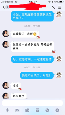 (公司辅导员通过网络了解员工身体情况)