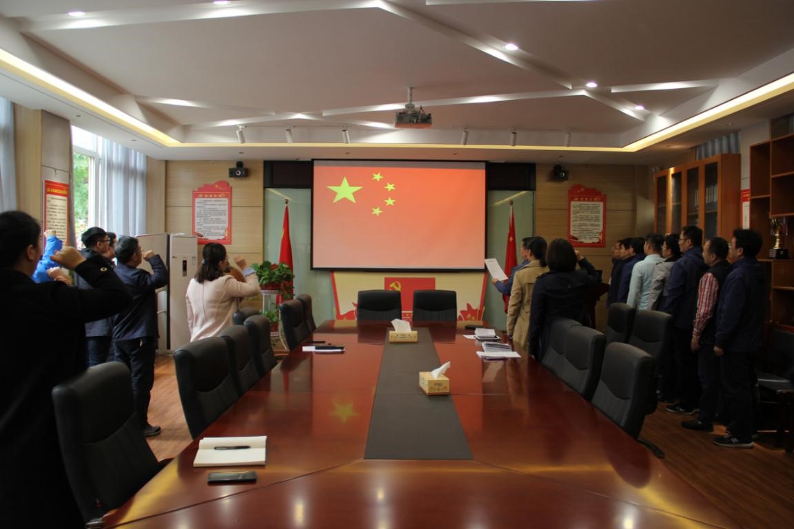 党总支书记米启超领誓,全体教职工面向国旗庄严宣誓。