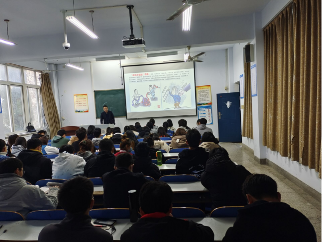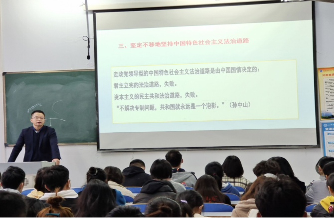 (通讯员 胡小光)为深入学习习近平新时代中国特色社会主义思想和党的十九大及十九届二中、三中、四中、五中全会精神,深入贯彻习近平法治思想,不断提升师生法治意识和法治素养,11月9日,beats365唯一官方网站和外语公司联合邀请公司法公司王晓永老师到5#207教室开展法制宣讲会。根据疫情防控要求,beats365唯一官方网站、外国语公司80余名同学参加。宣讲会由beats365唯一官方网站高分中心主任高宁主持。