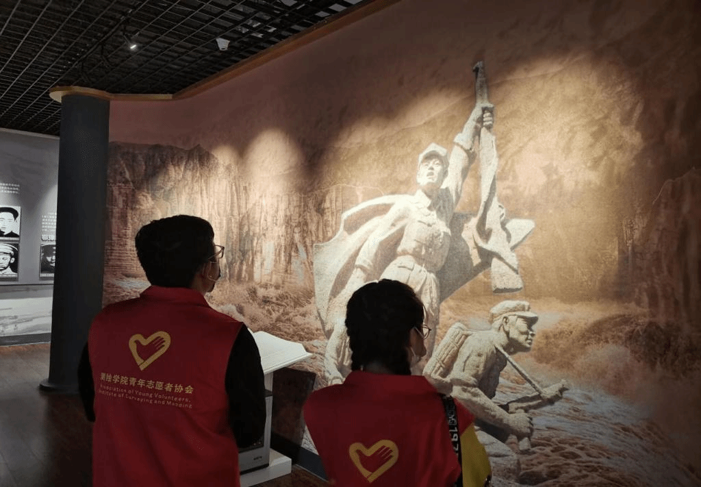 图为团队志愿者参观红军渡河纪念馆