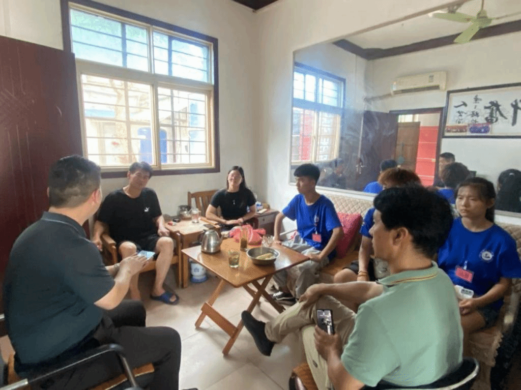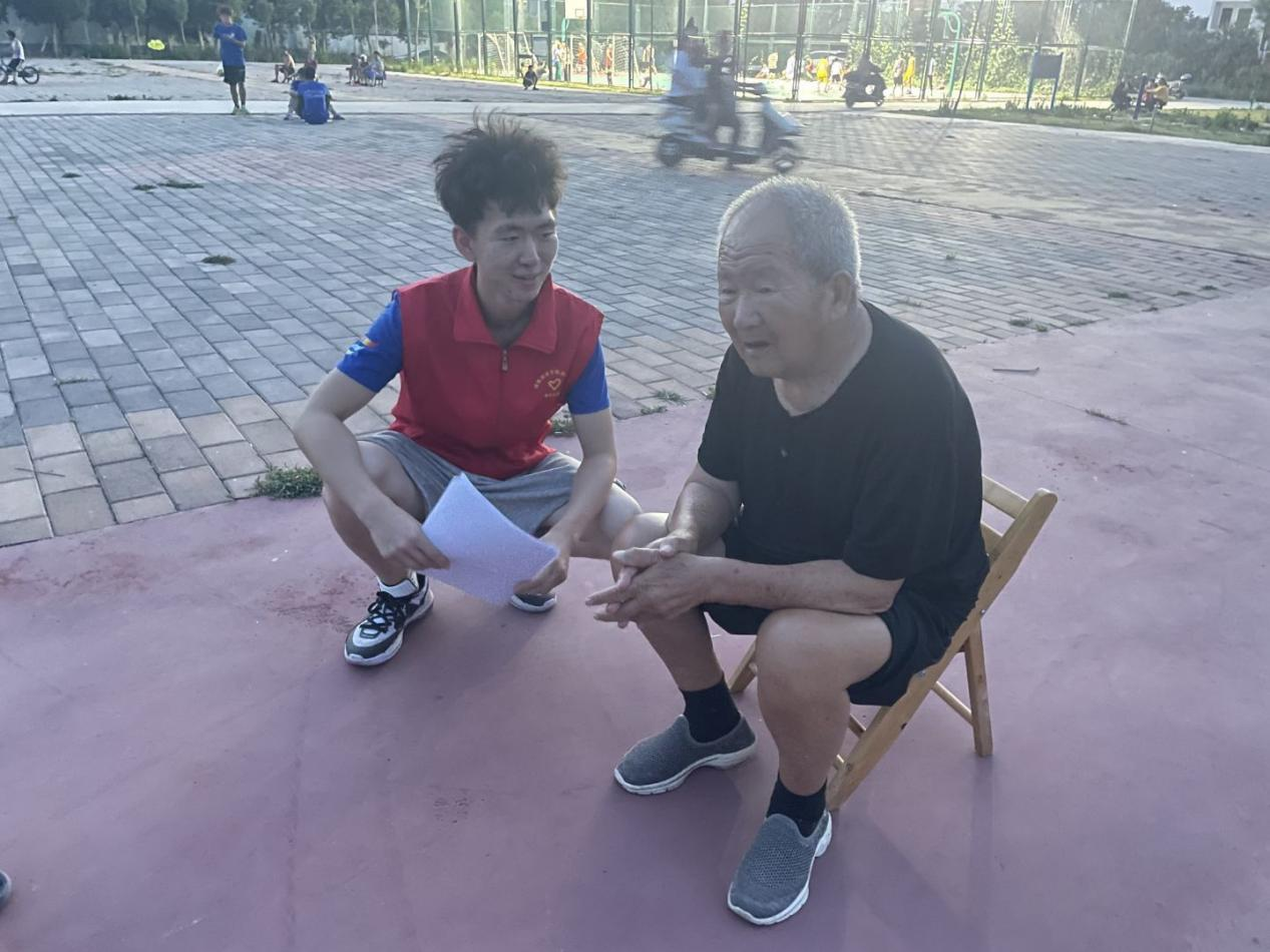 图为实践团成员走访年长前辈,了解红色脉络,寻找革命足迹