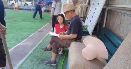 在服务团积极强烈的请求下,村支书首先通过村子里的喇叭将活动告知本村的村民,告知“振兴乡村文化”服务团到村子组织活动的意义以及实践内容。志愿者们不畏炎炎暑气,团队成员主动贴近群众,并散布到村子的各处,将先前制作好传单和印有《乡村文化振兴》的海报发放到村民的手中,询问他们关心的内容,并耐心细致的解答村民提出的有关《乡村文化振兴》的问题。并给予他们关于生活中如何健康合理娱乐的建议,避免由于缺少娱乐设施而导致的单一甚至不良文化娱乐生活方式。当遇到村内年龄稍长不善于与他人沟通的村民时,活泼开朗的队员就积极主动地迎上前,用最通俗易懂的方式让他们对宣传内容渐渐明晰,受到了不少村民的赞,并表示会协助宣传。