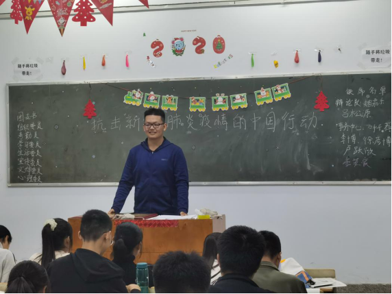 各班的团支书通过板书和多媒体介绍了主题团日活动的主要内容,并让同学们相互交流了疫情期间自己所知道的感人事迹和心得体会,并写下了感言。最后在团支书的总结中结束了班会。