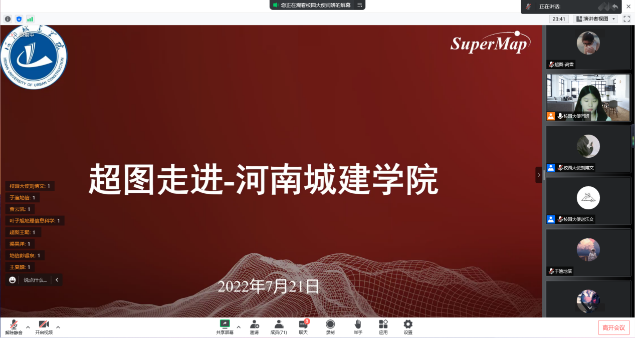 2022年7月21日,beats365唯一官方网站地理信息科学系组织召开了校企交流——“超图走进beats365唯一官方网站”线上专场活动报道会。