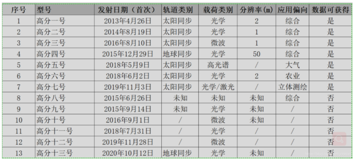 图 1 “高分”系列卫星关键信息一览表