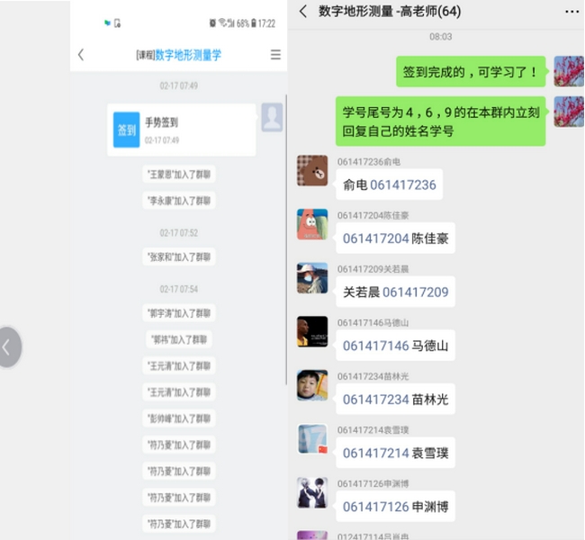 (3)综合利用“学在城建”、“数字地形测量学”教学群,进行综合签到,抽查签到。