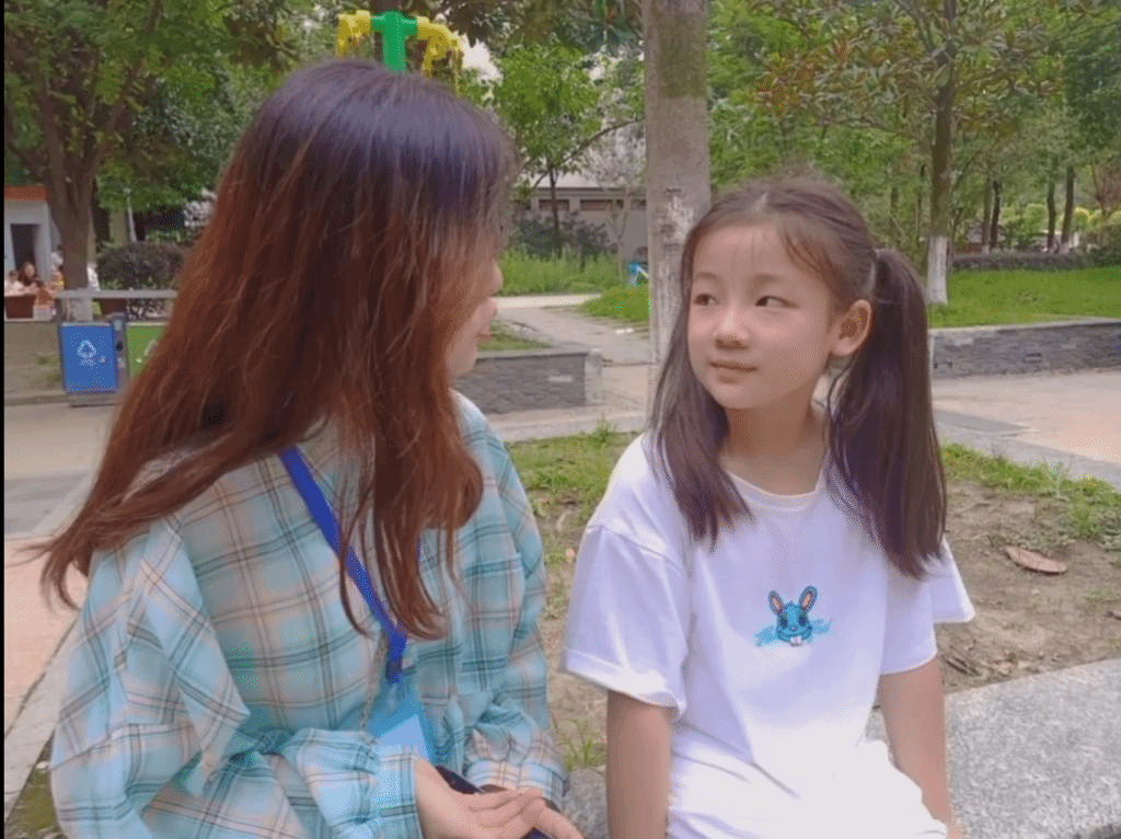 志愿者与小姑娘进行对话