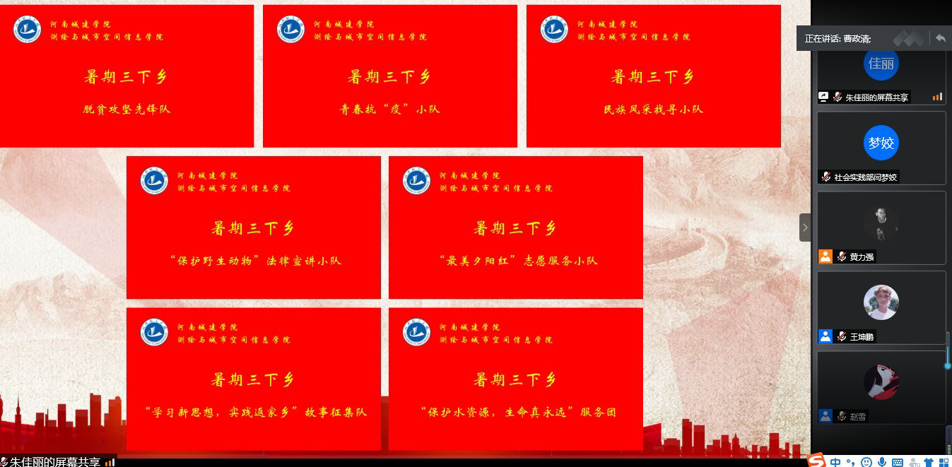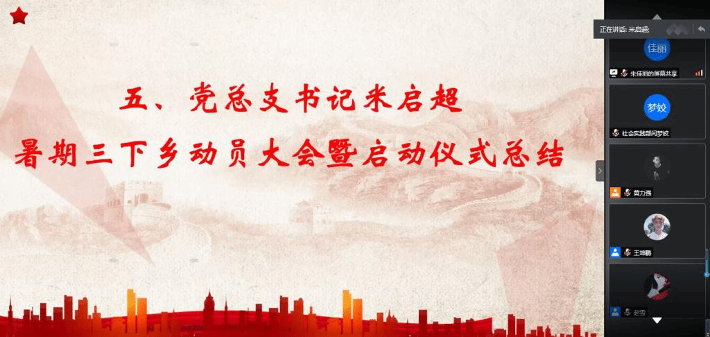 (通讯员 许东辉 刘畅)为响应团中央号召,加强老员工思想政治教育,进一步促进广老员工积极投身社会实践,beats365唯一官方网站积极组织开展老员工暑期“三下乡”社会实践活动,并于7月6日上午以线上腾讯会议的方式召开了2020年老员工暑期“三下乡”社会实践活动动员大会暨启动仪式。公司党总支书记米启超,党总支副书记卫柳艳,团学办主任许东辉,辅导员常莉,胡小光,李方圆,以及全体成员出席会议。