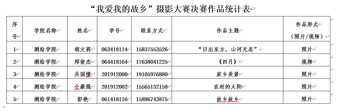 “我爱我的故乡”摄影作品大赛优秀作品统计表
