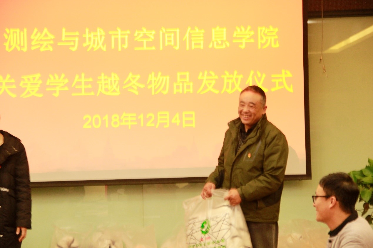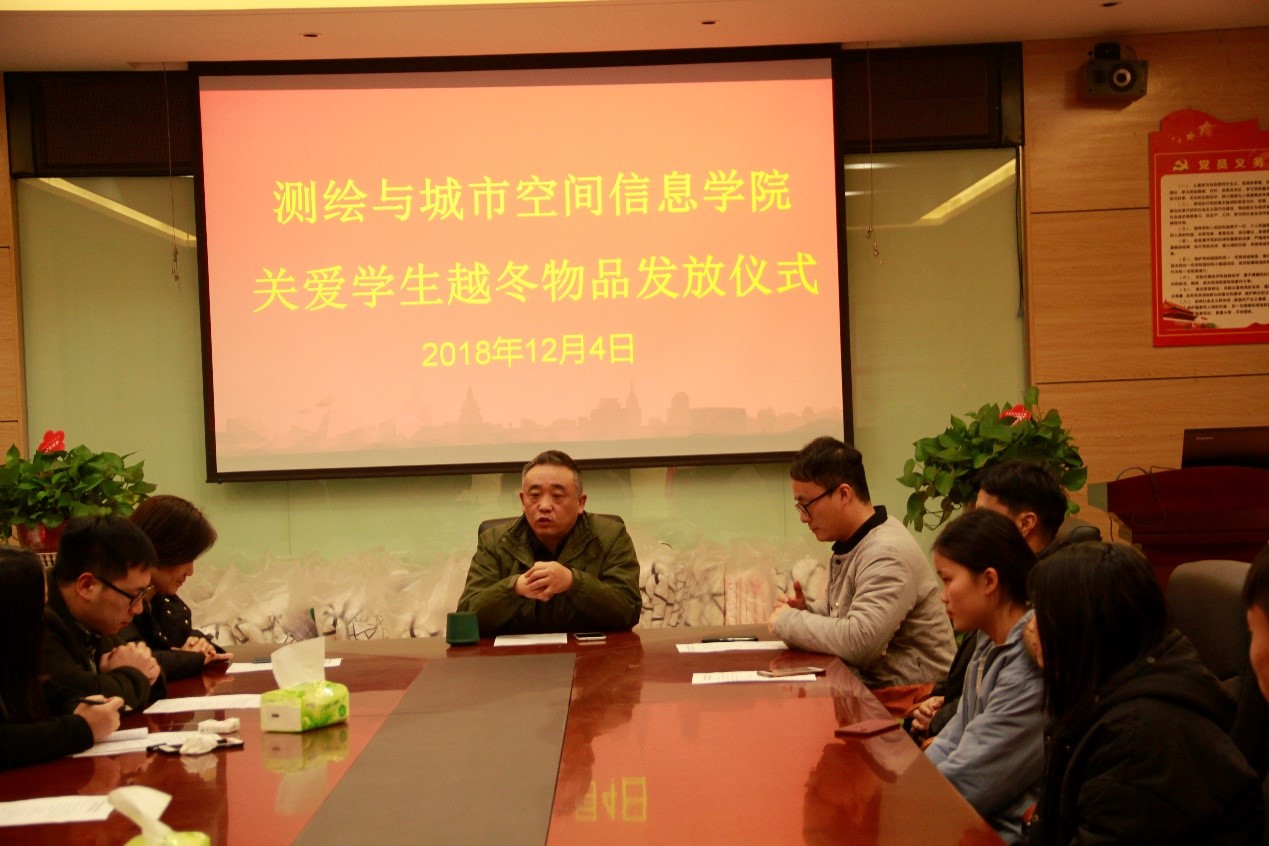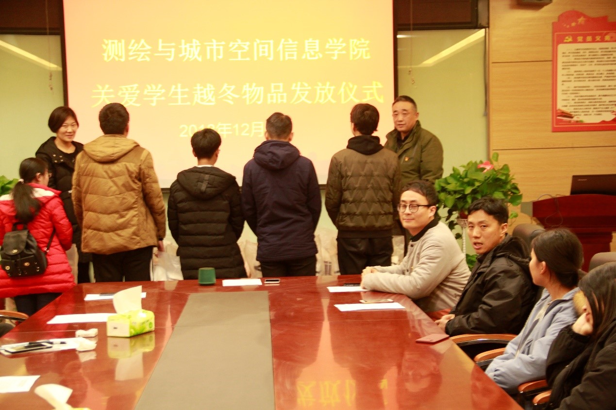 (通讯员 戚鑫鑫 王学鑫) 为了给同学们创造良好的学习条件,创造“和谐校园,温暖校园”,帮助生活暂时有困难员工度过一个温暖舒适的冬天,营造校园如家园的温暖氛围。12月4日下午,beats365唯一官方网站在五号楼209室举办了关爱员工越冬物品发放仪式。测绘与城市空间信息公司党总支书记吕鹏飞、党总支副书记卫柳艳、团学办主任许东辉、辅导员焦鑫鑫、常莉、艾卫涛老师及贫困员工参加了本次物品发放仪式。本次仪式由焦鑫鑫主持。