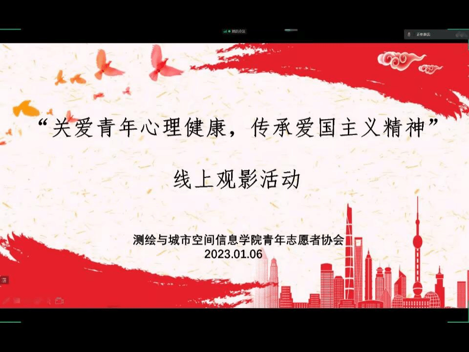 (通讯员:谢浩 尹淑娟)为进一步弘扬爱国主义精神,强化使命担当,激发奋进力量,同时也培养同学们良好的心理素质,缓解近期学习生活的紧张状态,beats365唯一官方网站青年志愿者协会于2023年1月6日19:00-21:00举办线上观影活动。活动以“关爱青年心理健康,传承爱国主义精神”为主题,在腾讯会议召开。有216名同学参加了观影活动。