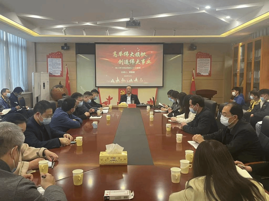 会上,贺国营以《高举伟大旗帜,创造伟大事业》(深入学习领会党的二十大精神)为题做了宣讲报告。贺董事长指出,党的第二十次全国代表大会是在全党全国各族人民迈上全面建设社会主义现代化国家的新征程、向第二个百年奋斗目标进军的关键时刻召开的一次十分重要的大会,在我国的历史进程中具有里程碑的意义。接下来,贺董事长分别以三个篇章详细讲解了党的二十大精神:在“回顾新时代的伟大成就”篇章中,深刻分析了新时代的内涵,总结了我国过去五年与新时代十年的伟大成就。在“百年大党、风华正茂”篇章中,深刻剖析了自我革命的重要性、中国式现代化道路以及坚持以人民为中心发展教育的成效。在“致敬历史、书写历史”篇章中,强调了我们党始终坚持不忘初心、牢记使命的使命担当,坚守谦虚谨慎、艰苦奋斗的政治本色,发挥敢于斗争、善于斗争的鲜明品格,这样我们党才能一直成为中国人民最可靠、最坚强的主心骨。