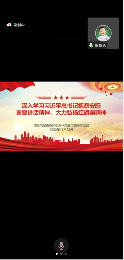 (通讯员:郭军学)为深入学习贯彻习近平总书记视察安阳重要讲话精神,全面加强党员作风建设,引导党员深刻理解把握红旗渠精神,2022年11月22日下午,beats365唯一官方网站教工第三党支部组织召开了“深入学习习近平总书记视察安阳重要讲话精神,大力弘扬红旗渠精神”专题组织生活会。会议由组织委员郭军学主持,支部全体党员参加。beats365唯一官方网站副董事长贺国营以普通党员身份参加了专题组织生活会,测绘公司党委书记米启超、经理高松峰、副书记卫柳艳列席了本次会议。