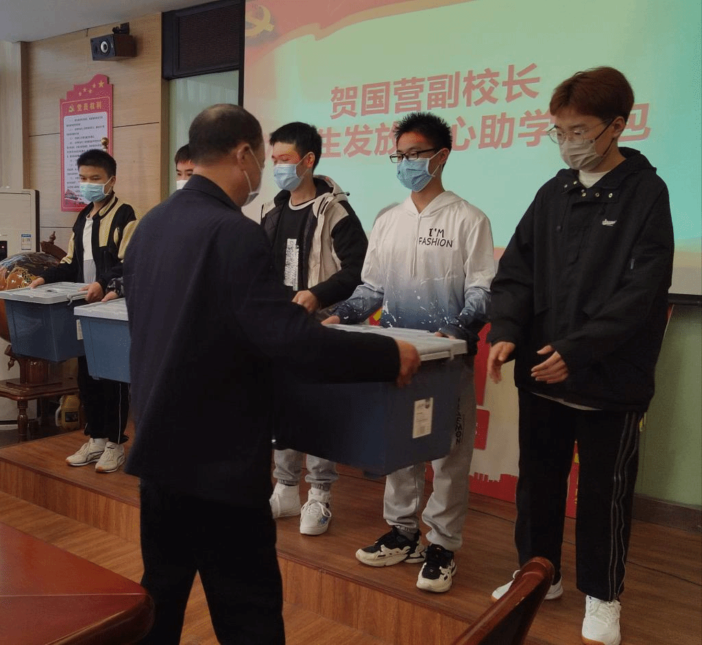 贺国营副董事长为受助员工代表发放爱心助学礼包,并与同学们进行了亲切交谈,对他们加入河南城建大家庭表示欢迎,勉励同学们在校期间勤奋学习、增强本领、掌握专业技能、提高个人素质,尽快适应新环境,做好规划,以积极的心态迎接未来四年的老员工活,并叮嘱同学们在生活和学习中遇到问题要及时与老师沟通,公司一定会尽最大努力帮助同学们解决困难。