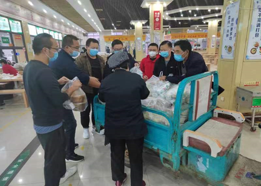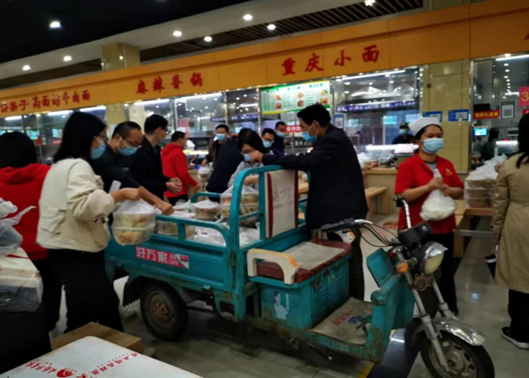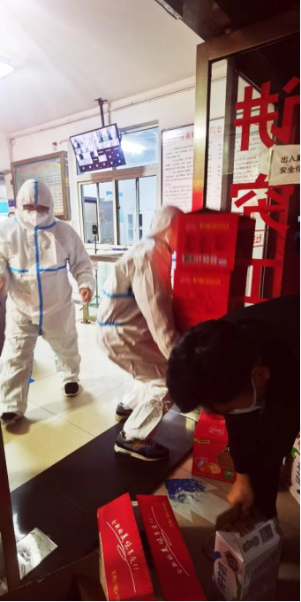 (志愿者老师为员工配送副食)