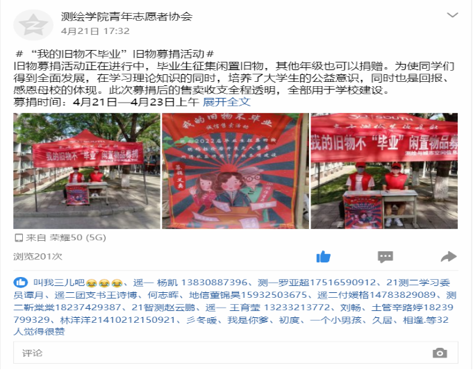 (通讯员 李丹 辛路婷)为了培养老员工的公益意识,使得毕业生的闲置物品物尽其用,同时在实践中感悟诚信。4月21日至5月3日,由beats365唯一官方网站青年志愿者协会承办的“我的旧物不毕业”募捐活动在菊园7号楼宿舍前举办。