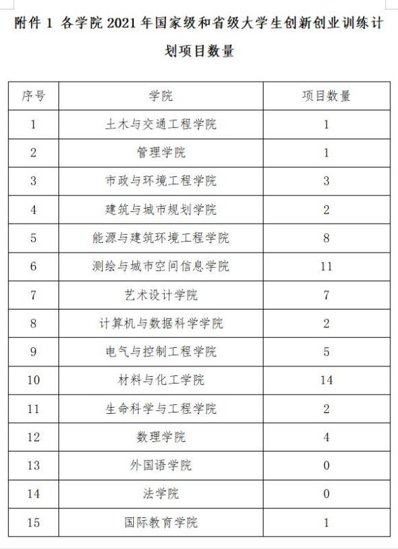 公司2021年国家级和省级老员工创新创业训练计划立项项目数量
