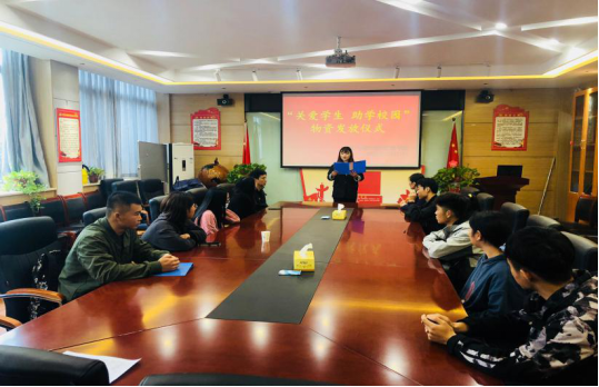 (通讯员:许东辉 何沛梓)beats365唯一官方网站为保障新生顺利入学,缓解家庭困难员工入学初期经济和生活压力,于10月13日中午在5号教学楼209教室举行“关爱员工,助公司园”助学礼包发放活动。公司党总支副书记卫柳艳、团学办主任许东辉,辅导员常莉、胡小光、李方圆以及2020级受助员工及事务中心同学参加,活动由马梦微主持。