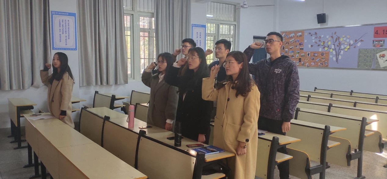 活动伊始,党支部书记常莉介绍了活动目的及意义,通过本次活动,希望本支部的各位党员谨记“不忘初心、牢记使命”的责任担当,真正做到“守初心、担使命,找差距、抓落实”的自身要求,可以扪心自问“入党初心是什么、党员使命担什么、对照先进自己差什么、立足本职做什么”,通过对照身边和所能了解到的表率与标兵、反躬自省,问出自己的初心使命,问出责任担当,问出自己的差距不足,问出该努力方向,同时不断增强自身的“四个意识”、坚定“四个自信”、坚决做到“两个维护”,维护习近平总书记在党中央和全党的核心地位,坚决维护党中央权威和集中统一领导。在常老师介绍了活动的目的及意义之后,向支部党员发问。活动最后,由支部书记作为领誓人,重温入党誓词。