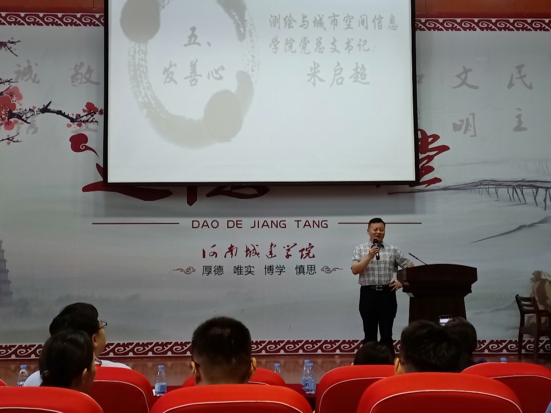 首先,全体师生在主持人的“三问”中省吾身。“唱歌曲”环节,全场齐唱《说唱脸谱》,重温戏曲的魅力;在“学模范”环节,观看了京剧大师谭孝曾的纪录短片,并由梁玉保教授代表发言,讲述发生在身边的感人小故事,倡导师生做好事、做善事,帮助他人;在“诵经典”环节中,测绘公司党总支副书记卫柳艳带领四位员工合诵《离骚》,让师生在经典中感受传统文化;“发善心”环节中员工代表岳朝兴讲述老员工传承传统文化的重要意义、教师代表李军杰博士由端午节习俗畅谈传统文化的传承与发扬,创新性的将墨子文化与测绘专业教学比较、启发、融合,阐释了专业课程思政教学的精品案例。接着由测绘公司党总支书记米启超总结发言,作承诺,弘扬崇德向善。活动最后工作人员向全体师生发放了吉祥礼物。