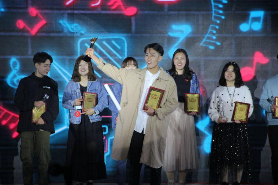 比赛开始前,现场就早已坐满了观众,他们都期待着今晚选手们的精彩表演。决赛正式开始时,十位选手先给大家带来了一首大合唱,展现了他们各自独特的音色,把现场气氛充分调动了起来。接着,一号选手出场,她怀揣着激情与梦想,一上台便让在场所有人感受到了她对展现才华的热情和渴望。选手刘以欣的一首《起风了》点燃了观众的热情,美妙的音色让观众们陶醉其中,台下的观众们再也按捺不住心中的热情,手里挥舞着荧光棒,为她助威呐喊。经过两轮的海选,一首首歌曲或婉转悠扬,或慷慨激昂,或含情脉脉。接近比赛的尾声,还邀请到焦鑫鑫老师作为嘉宾,为大家献歌一首。最后,评委们评分,选手周冰贺以9.40的分数成为第一名,新一届“歌王”诞生。评委老师共同为本届校园十佳歌手颁奖,并与选手们一同合影留念。至此,本届校园歌手大赛画上了一个完美的句号。