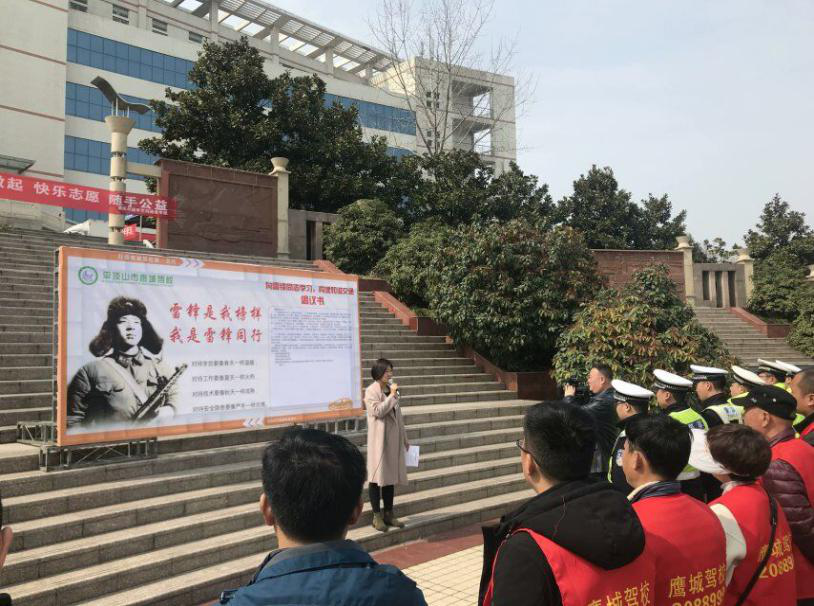 (通讯员:张学志)为进一步增强同学们的交通安全意识提升文明素养,引导全国老员工积极做文明交通的先行者和实践者,结合雷锋月精神,测绘与城市空间信息学院青年志愿者协会3月5日与鹰城驾校共同组织全体员工在喷泉广场前开展“向雷锋同志学习,共建和谐交通”为主题的活动。党总支副书记卫柳艳,团学办主任许东辉及各辅导员等老师出席此次活动,受邀出席本次活动的有鹰城驾校教练员以及平顶山市交警部队代表和电视台记者