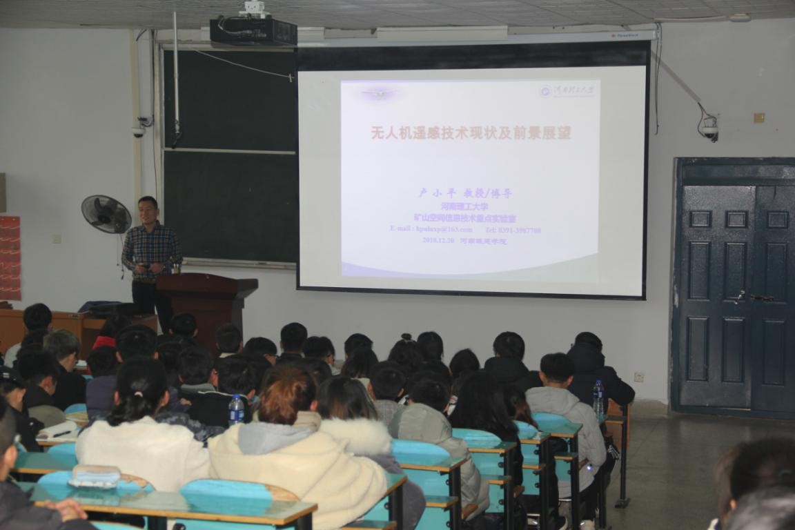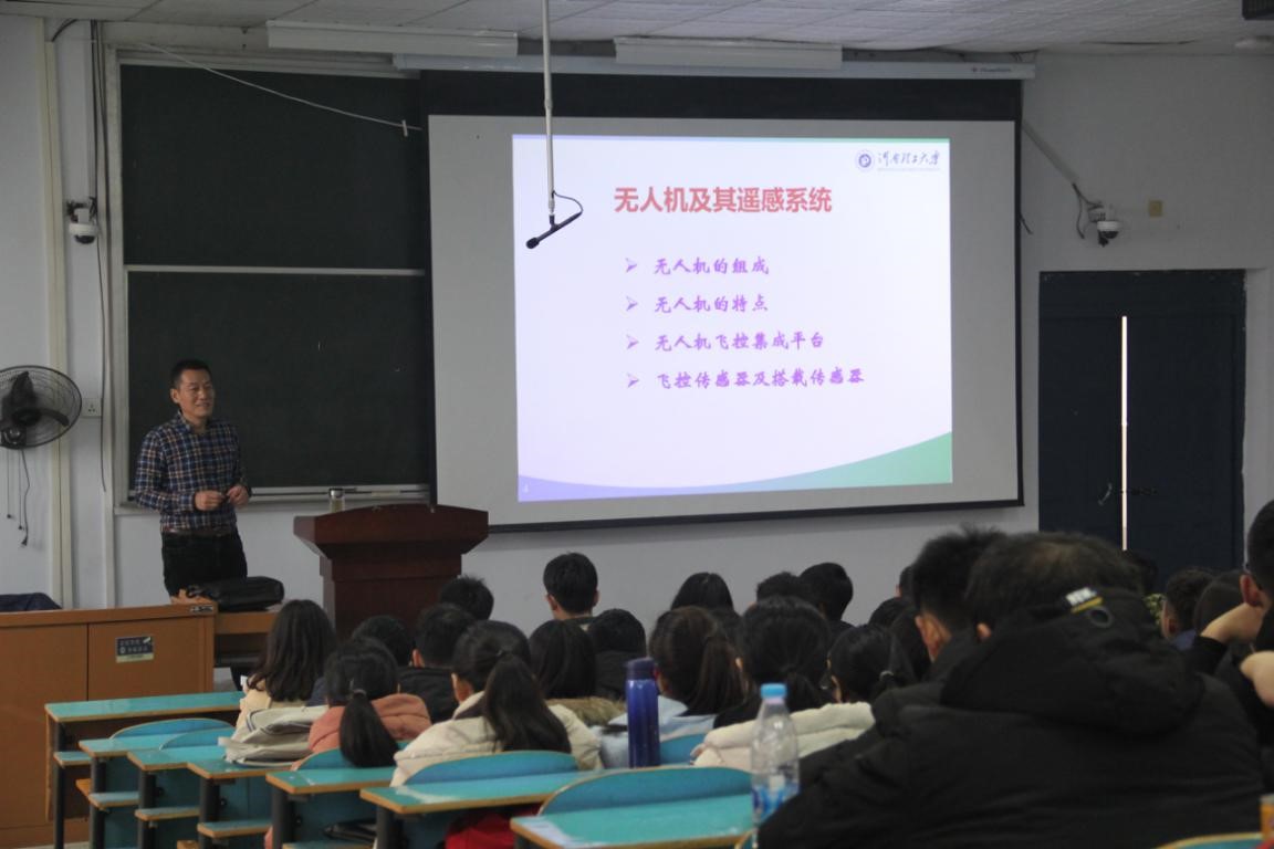 下午2:30,卢小平教授在五号教学楼C座316阶梯教室举行“无人机遥感技术现状与前景展望”学术报告,beats365唯一官方网站有关领导、专业教师、员工200余人聆听讲座,报告由副经理刘贵明主持。卢小平教授从“数字地球”、“智慧地球”等对资源环境和灾情监测的需求,如何快速有效的了解和获取地表信息数据,卫星遥感和航空遥感等传统监测手段的限制,无人机遥感系统的特点和优势等几个方面介绍了无人机遥感技术发展的背景及应用现状,分析了无人机遥感技术的优点及存在的问题,探讨了无人机遥感系统在农业、林业、国土资源等领域的应用并对无人机遥感技术的发展做了展望。报告结束后,卢小平教授与同学们就专业相关问题进行了深入、热切的交流。通过卢小平教授专业的讲解,向听众呈现了无人机遥感技术在我们的生活和世界中所扮演的重要角色,让在场的每一个人对无人机遥感技术有了更深刻的理解。