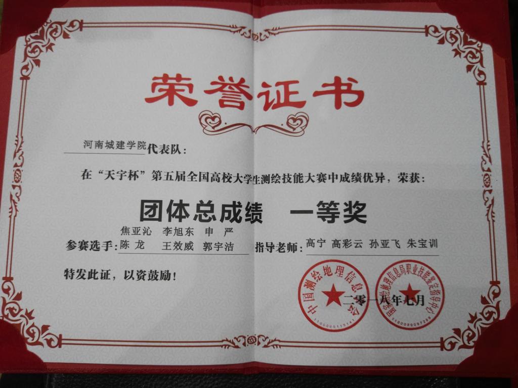(通讯员 高宁)7月20日-7月25日,“天宇杯”第五届全国高校测绘技能大赛在东北大学举行。本次竞赛共设“二等水准测量”、“数字测图”和“程序设计”三项赛事,经过紧张激烈的角逐,公司代表队成绩优异,荣获团体总成绩一等奖。