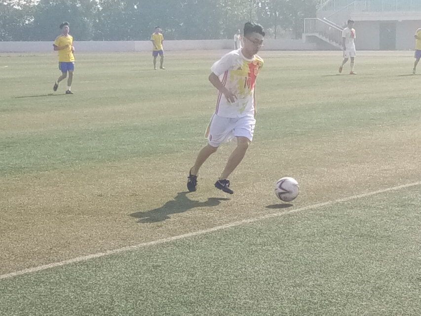 比赛双方是毕业生代表队和在校生代表队,裁判员一声哨响,双方足球队员势如破竹,场上的每一位足球健儿都意气风发,斗志昂扬,演绎着现代足球的激情与热烈。他们在炎炎烈日下、茵茵球场上奋力奔跑,他们相互配合,默契十足,场面精彩纷呈。球场上他们偶有摔跤,这也寓意他们今后的人生道路会有坎坷,希望他们能够像在足球场上一样,从哪里跌倒便从哪里爬起来,继续未来的路,做勇敢坚强的自我。整场比赛和谐却又不失精彩,真正赛出了友谊,赛出了风采。