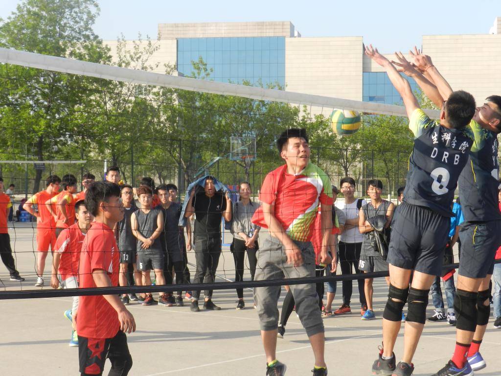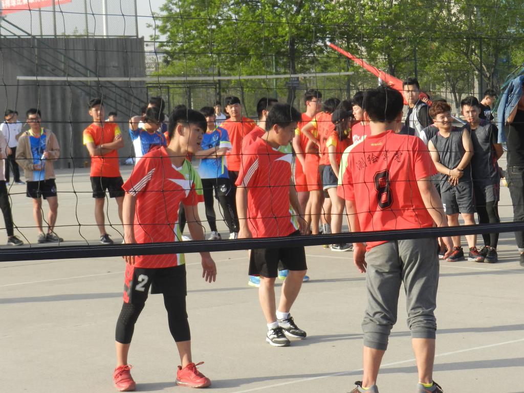 开赛之前,赛场上早已人头攒动,各班的观众聚集在赛场周围翘首以待这一场精彩的赛事。烈日炎炎,挡不住他们取胜的信心,人山人海的战场,恐惧不了他们战斗的激情。随着一声声哨响,各院的队员们便开始了龙争虎斗。各施展绝技,一个个精彩的拦网、扣球,队员们也完成了一个又一个完美的配合,让在场的观众都欢呼不已。落后的队伍也毫不逊色,不断地调整自己的战略战术,为了搬回比分显示出了他们永不放弃的精神。此时,场下的拉拉队也喊破了为自己公司加油助威的嗓子,好一派热闹的场景。