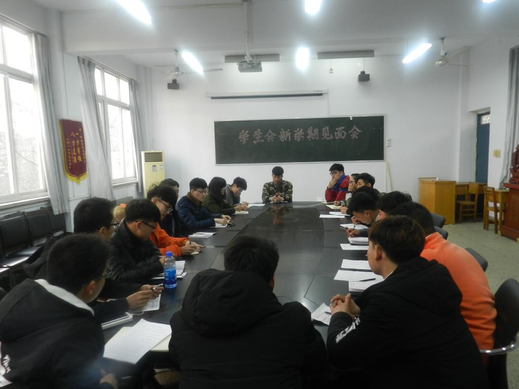 会议伊始,许东辉老师发表讲话,首先简述了上学期末工作总结会议提出的几项举措,表示在本学期内将会紧抓员工会工作落实情况,要求员工会成员脚踏实地工作。其次,做好员工会工作资料整理工作,要做到查有可证。并为未来半年内的员工会工作目标指明了方向——加强学风建设。之后许老师向大家介绍了张艺成老师,张老师将暂时协助团学办管理员工工作。接着,各部门主动阐述自己的一些想法和制定本学期的目标,干部们积极发言,畅谈了自己的想法,期间,许老师和张老师对大家提出的想法于建议予以补充,呈现出轻松欢快的场面。最后,本次会议在员工会主席赖祥源的总结中完美结束。