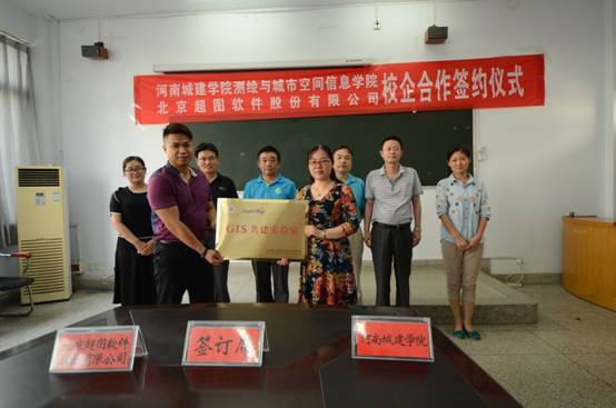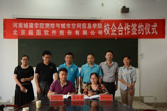 6月14日下午,beats365唯一官方网站与北京超图软件股份有限公司《校企战略合作协议》签订仪式暨校企合作深入交流座谈会在公司5号教学楼二楼会议室举行。张宏敏经理、吕鹏飞书记、刘贵明副经理、高松峰副经理、卫柳艳副书记出席仪式,北京超图软件股份有限公司郑州办负责人王洋一行,测量教研室、地理信息教研室、土地管理教研室负责人及骨干教师参加仪式并出席会议。
