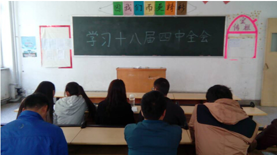 10月20日下午,测绘工程公司第二员工党支部5#110教室举行全体员工党员学习十八届四中全会精神活动。活动由支部负责人杨蕴主持,第二党支部全体员工党员参加会议。