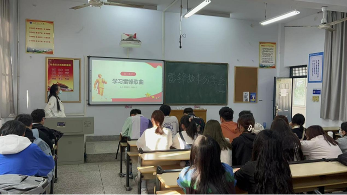 (团支书带领同学们学习雷锋歌曲)