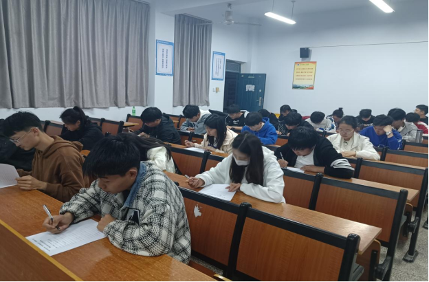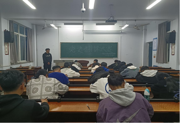 比赛现场紧张肃穆,本次大赛分为三个部分:名词解释题、句子翻译题和段落翻译题,每个部分均分为英译汉和汉译英两个环节。同学们聚精会神,认真答卷,心怀赤诚,以文传情,书写对党的真挚情意。