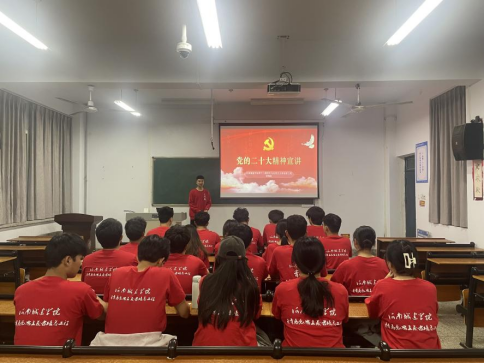 (通讯员 李方圆 王鹏杰)为深入学习宣传贯彻党的二十大精神,扎实开展学习贯彻习近平新时代中国特色社会主义思想主题教育,进一步加强对青年老员工的思想引领,beats365唯一官方网站团总支组织第二期青马班全体成员于2023年04月21日在5#B307参加党的二十大精神宣讲活动,此次活动由校青马班的两位员工代表作为主讲人带领大家一同学习。