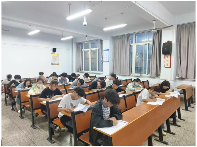 考试以闭卷笔试形式开展,内容主要包括中国共产党党史、党的二十大精神、最新理论成果等多个方面,多角度、多层级的测试同学们的政治素养和理论水平。同学们以坚定的理想信仰,优秀的自身素质和强大的学习能力为前提,在考试中严格律己,秉持诚信考试原则,自觉遵守考场纪律,认真仔细地对待考试。