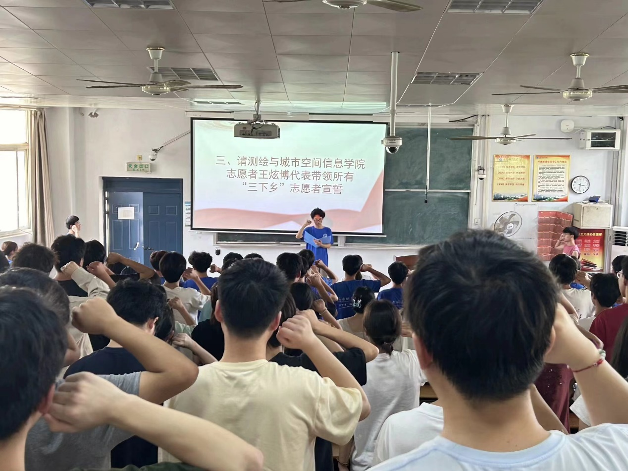 启动仪式在庄严的国歌中拉开帷幕。首先,由团委书记宋自影老师做暑期“三下乡”工作安排,她强调“三下乡”社会实践的重大意见及目的,鼓励同学们积极参与,在实践中不断探索,突破创新。紧接着志愿者代表王炫博带领所有“三下乡”志愿者宣誓。