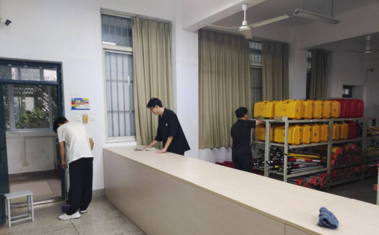 此次检查由公司高宁副经理主持,实验室中心主任魏亮以及管理员老师与员工共同参与。本次检查重点盘点了实验室内所有物品,确保器材耗材充裕且摆放井然;全员动员,以扫帚抹布等工具彻底清扫实验室。特别针对电路、水源及消防设施进行了全面安检,院领导重申仪器设备需定期维护,以保障新学期内顺畅运作,为师生教学科研活动筑牢坚实后盾。