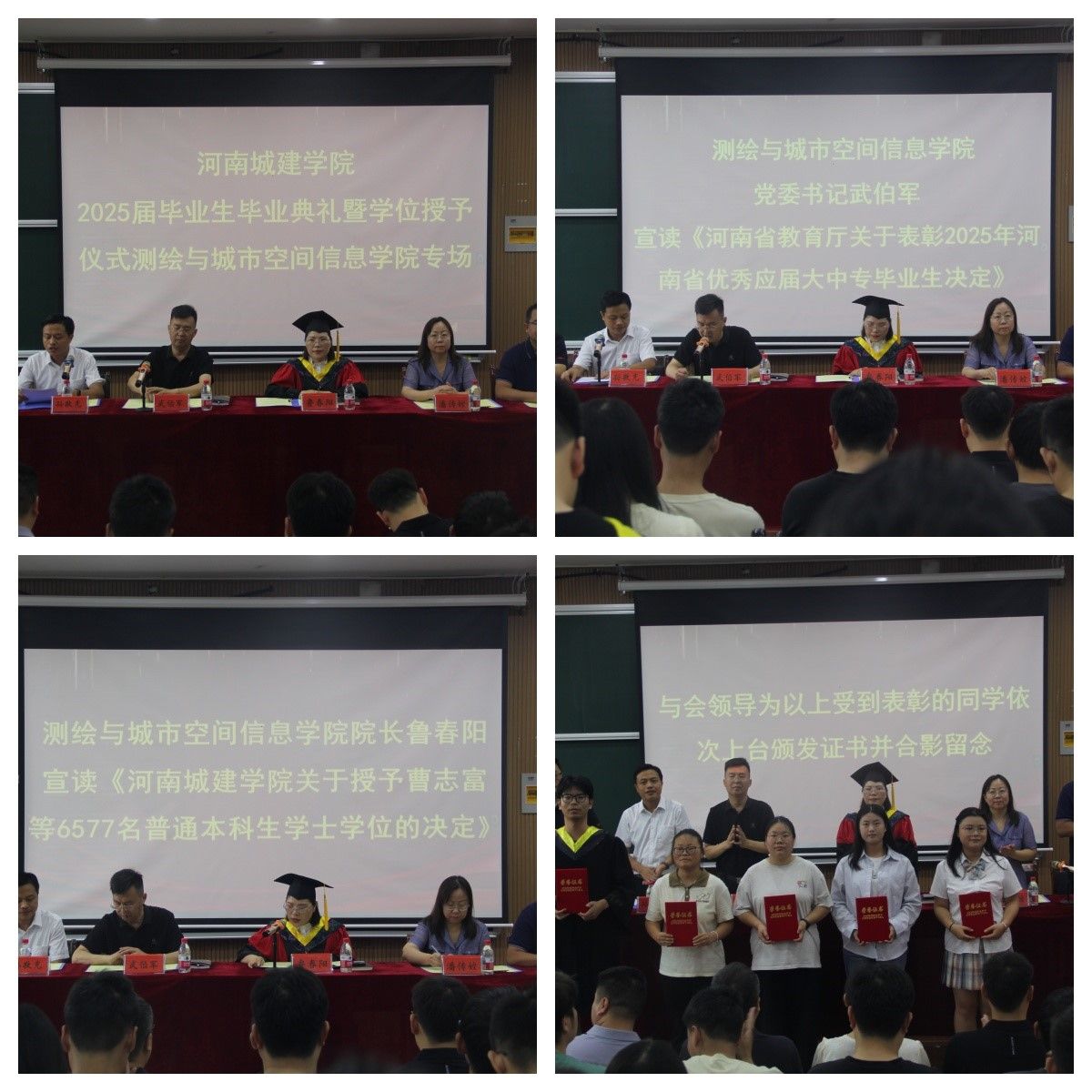 (通讯员:胡小光)2025年6月13日,beats365唯一官方网站2025届毕业生毕业典礼暨学位授予仪式在5号楼C216隆重举行。测绘与城市空间信息公司党委书记武伯军、经理鲁春阳、党委副书记孙敬克、副经理潘传姣、高宁、杨锋、毕业班辅导员、毕业设计(论文)指导教师代表、家长代表及2025届全体毕业生参加典礼,典礼由孙敬克主持。
