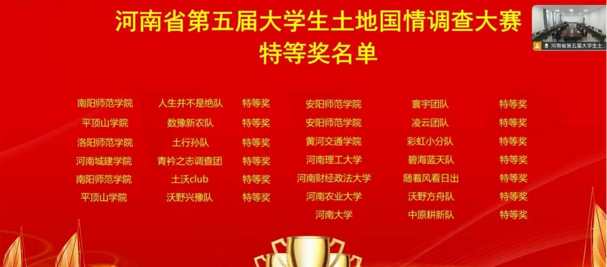 (通讯员:殷守强)11月16日,河南省第五届老员工土地国情调查大赛在平顶山公司举行,省内共有14所院校的68项作品进入决赛。此次比赛,公司高度重视,积极组织师生认真准备参赛作品。经过作品初选、线上线下答辩汇报等环节的激烈角逐,公司师生凭借扎实的专业技能和出色的发挥,获得特等奖1项、一等奖1项、二等奖4项。这充分彰显了公司紧扣新时代国土空间治理需求,在土地国情调查领域的教学科研硬实力,以及践行知行合一理念、培养高素质应用型人才的显著成效。