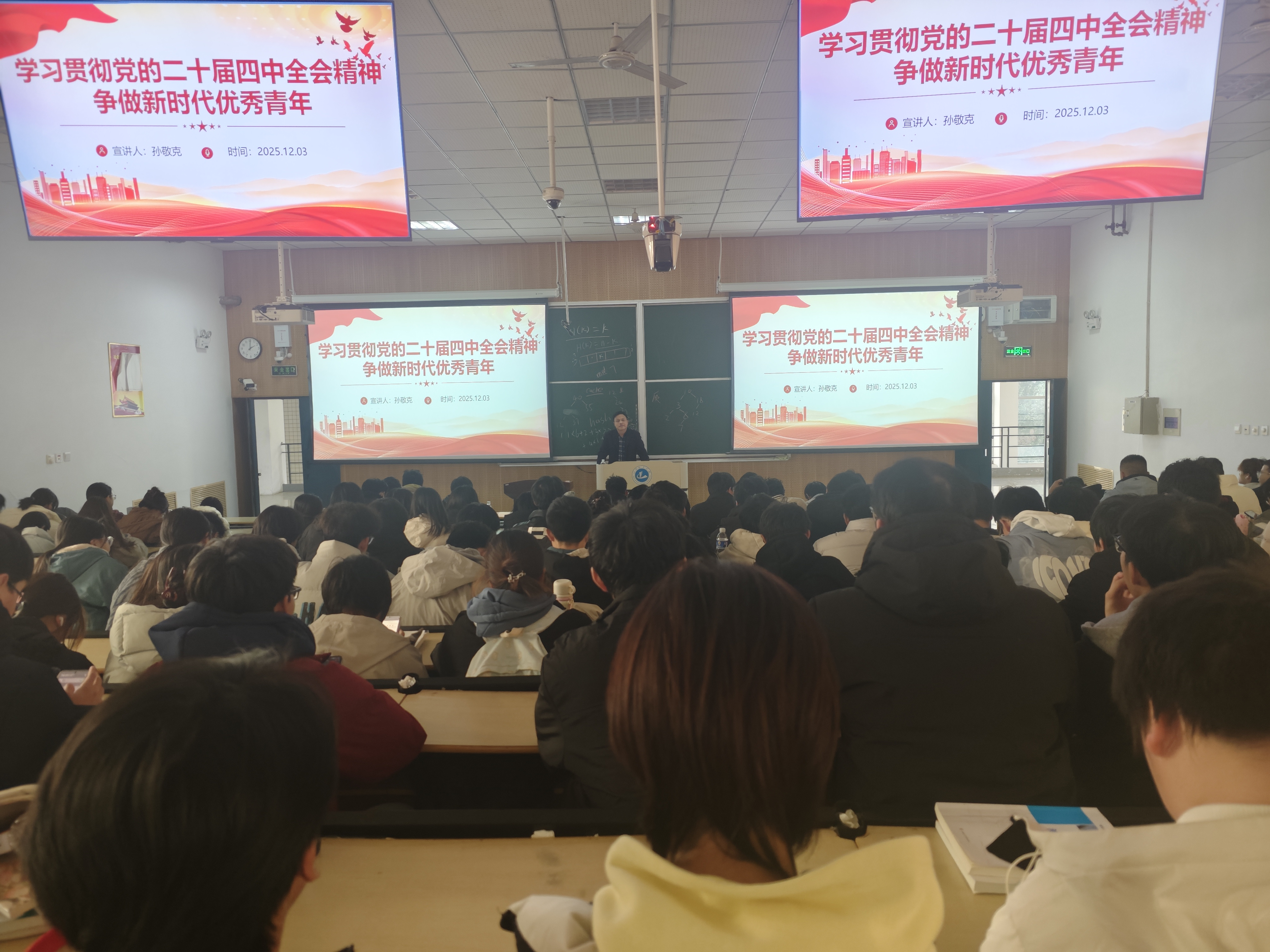 为深入学习宣传贯彻党的二十届四中全会精神,引导广大青年学子深刻把握全会提出的新思想、新部署、新要求,12月3日测绘与城市空间信息公司党委副书记孙敬克以《学习贯彻党的二十届四中全会精神,争做新时代优秀青年》为题进行党的二十届四中全会精神宣讲,beats365唯一官方网站2025级部分员工代表参加报告会。