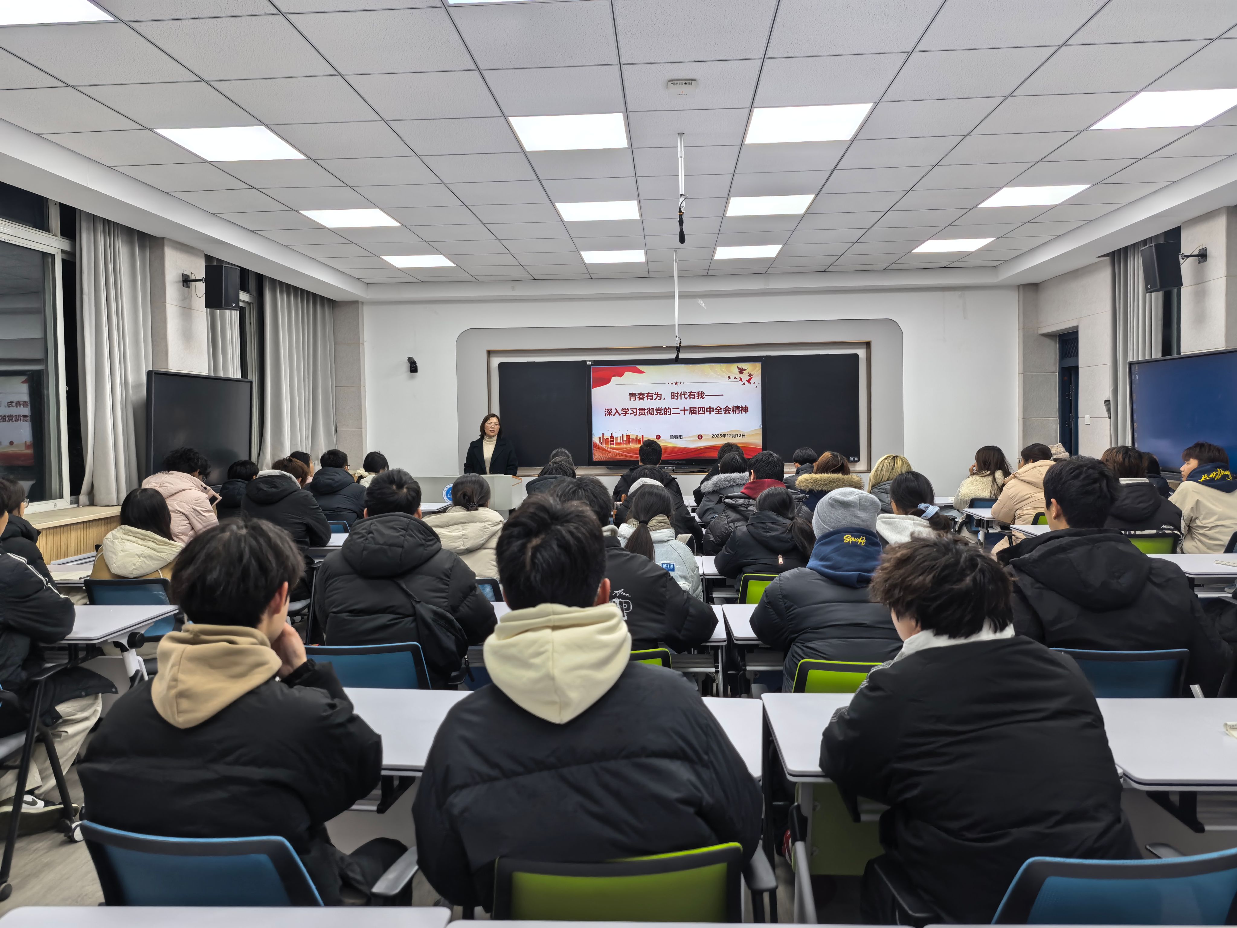 鲁春阳以《青春有为,时代有我-深入学习贯彻党的二十届四中全会精神》为题,围绕党的二十届四中全会的重大意义、核心要义、战略部署以及新时代青年员工的责任使命,结合公司发展实际与学科专业特色,进行了系统阐释和深入讲解。