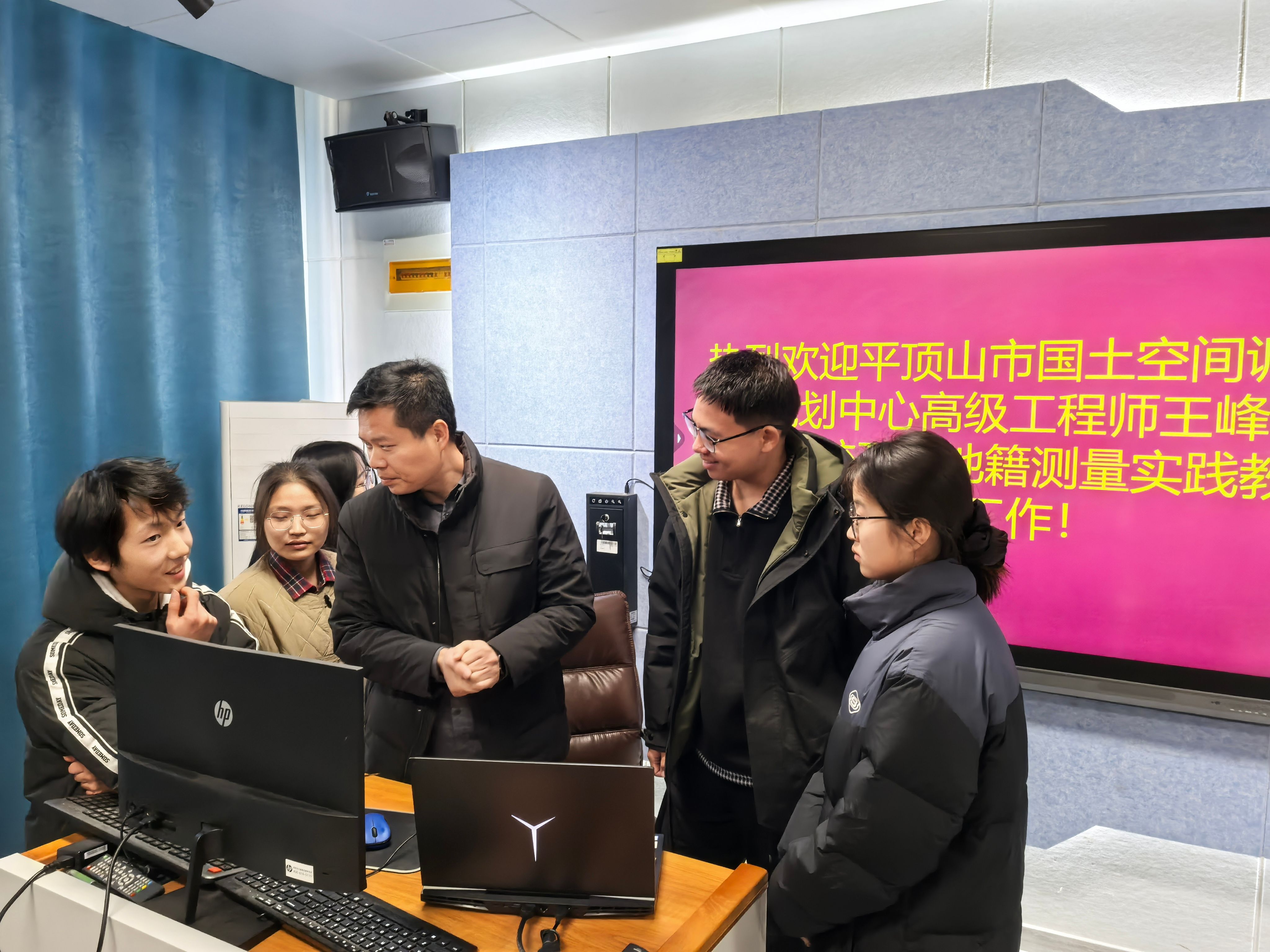 指导过程中,王峰立足自身丰富的一线工程经验,以真实项目案例为切入点,围绕地籍测量核心实操技术展开系统讲解。重点针对地籍调查流程规范、CASS绘图软件实操技巧、宗地图精准绘制方法、地籍图成图关键要点及勘测定界实操应用等核心内容,进行了细致拆解与实操演示,将抽象的技术原理转化为直观易懂的实践步骤,有效破解了同学们在前期实操中遇到的困惑。