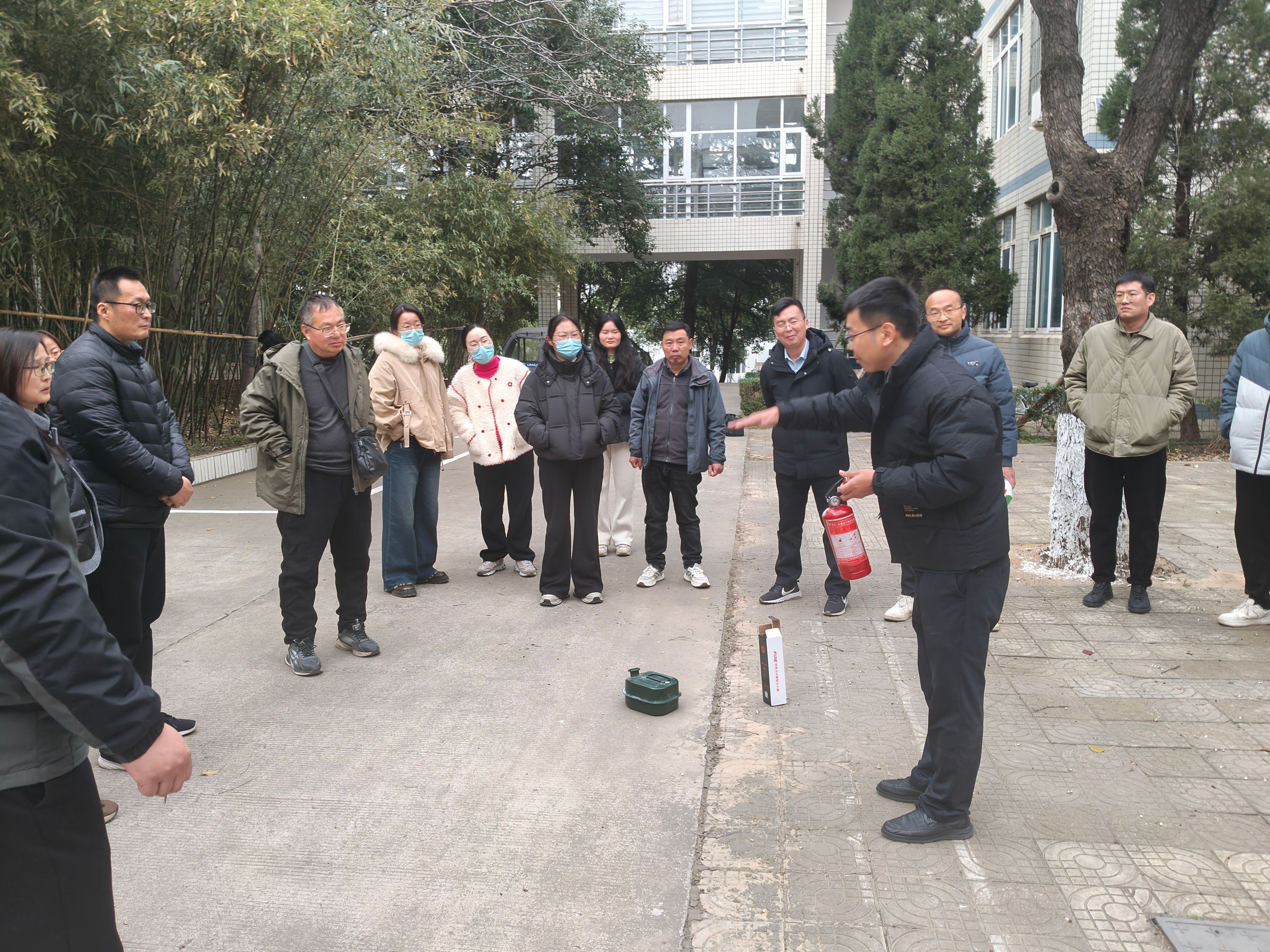 理论培训结束后,实战灭火演练随即展开。在郑文剑讲师的专业指导下,邀请公司教职工共同进行灭火器实操练习,从灭火时的站位、喷射角度等细节,郑老师逐一示范并纠正动作,确保师生都能熟练掌握灭火技能