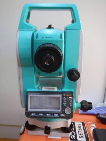 仪器简介: 该全站仪购置于 2000 年 6月,日本索佳公司生产。索佳Set500采用液体双轴倾斜传感器,补偿范围为3',带有大容量存储器,可以存放10000个点的全部数据,测角精度为5″,最小显示可选为1″,测角精度为5″,测距精度为±(2mm+2ppm·D),测程为3400m。
